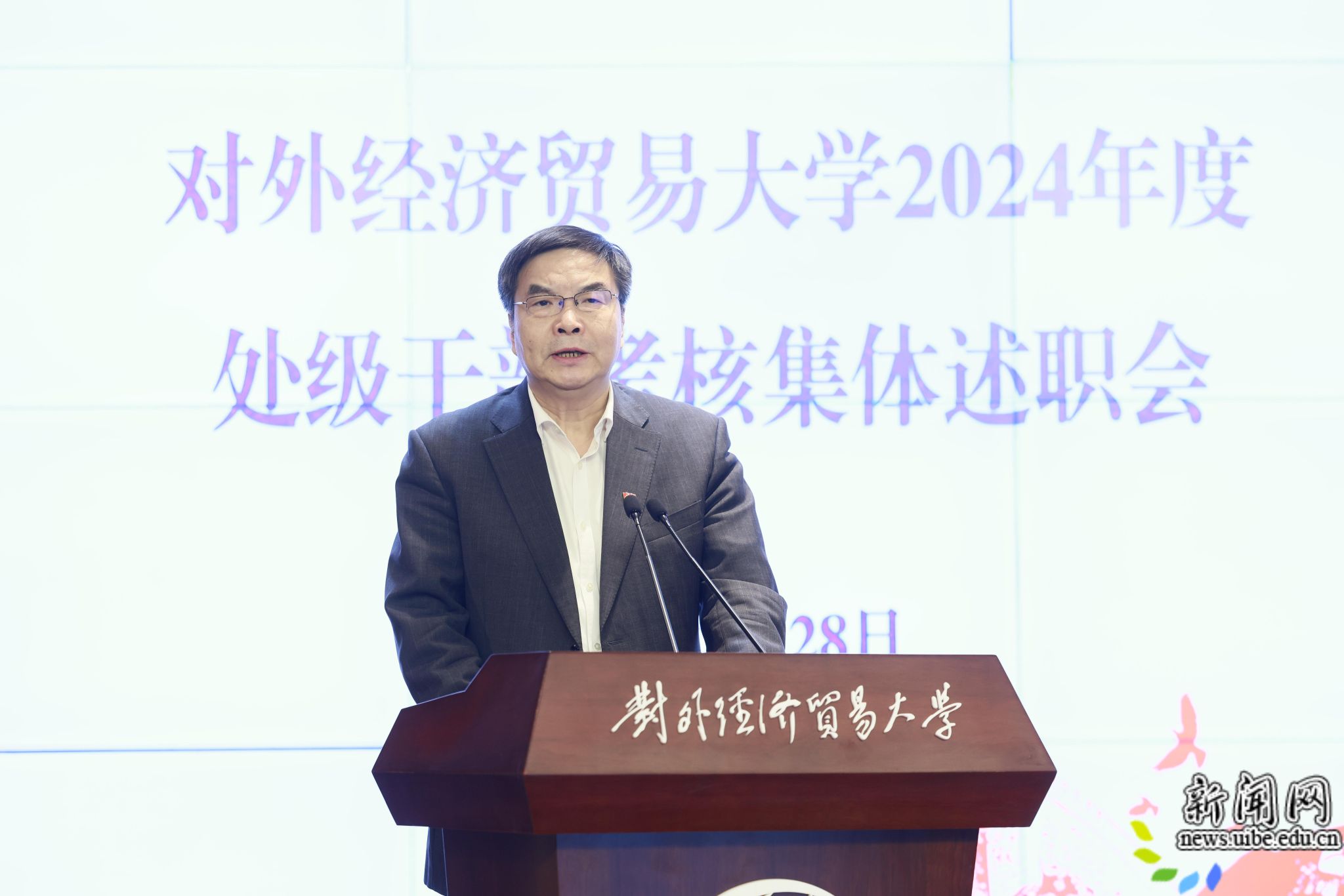 赵忠秀校长认真听取现场述职并总结指出,过去一年,各单位紧紧围绕学校中心工作,团结协作,锐意进取,攻坚克难,取得了一系列显著成绩,党的领导全面加强,立德树人成效不断提升,“外”字文章持续做大做强,学校事业发展面貌焕然一新,干事创业精气神明显提升。领导干部年度述职是干部管理的一项重要动作,旨在盘点成绩、查找不足、总结经验、奋发前行。他向全体处级干部提出三点要求:一是怀自信而求索,勇担当而作为。要增强使命感责任感紧迫感,以更高的标准、更严的要求,更强的担当和更大的作为,推动工作实现更大的突破跃升。二是知不足而奋进,望远山而前行。要坚持目标导向、结果导向,从学校全局工作谋一域发展,以一域成绩为全局添彩。三是立潮头而争先,勇攀登而卓越。要进一步提高政治力、谋划力、执行力、团结力,以钉钉子精神推进十四五规划和三年行动计划各项目标任务落实落地,奋力谱写教育强国建设的贸大一流篇章。