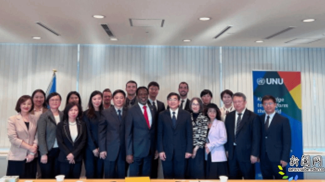 1月19日,代表团参加了由联合国大学总部主办的高层次项目“联合国大学总部·可持续发展模拟多边谈判实训营”(以下简称实训营)开营仪式,该实训营是高层次项目框架下的重要实践活动之一,旨在为项目院校师生提供赴国际组织学习、见习的平台。随后,代表团与联合国大学校长、联合国副秘书长Tshilidzi Marwala,联合国大学高级副校长Sawako Shirahase,联合国大学可持续发展高级研究所所长Shinobu Yume Yamaguchi等会谈,就学生赴国际组织实习、未来合作等进行了探讨。