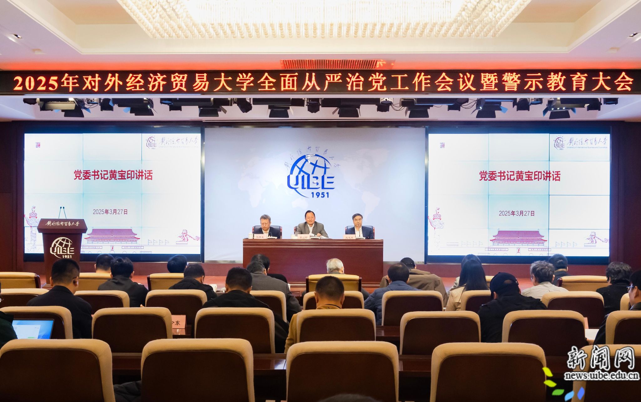 校新闻网讯(纪委办公室/监察处供稿 摄影 于璐 刘思齐 曲凌晨)3月27日,学校召开2025年全面从严治党工作会议暨警示教育大会,深入学习贯彻习近平总书记在二十届中央纪委四次全会上的重要讲话精神,传达学习2025年教育系统全面从严治党工作会议和北京市纪委十三届四次全会精神,观看警示教育片,通报校内外违纪违法典型案例,总结去年全面从严治党工作,部署今年重点工作。校党委书记黄宝印,校党委副书记、纪委书记马贵生出席会议并讲话。会议由校长、校党委副书记赵忠秀主持。全体在校校领导出席会议。