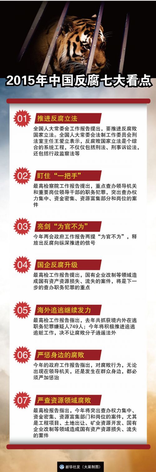 2015年中国反腐将有哪些新动向?高压反腐将如何继续?“新华视点”记者在两会上采访权威人士,探究未来中国反腐的七大看点。